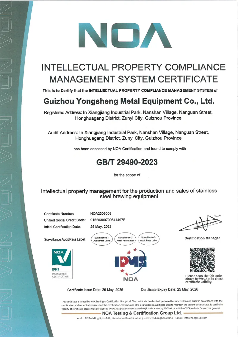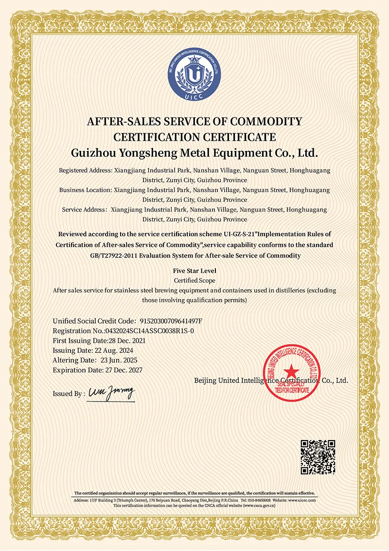 ООО Гуйчжоу Юншэн неизменно придерживается корпоративного духа «Мастерство в литье, качество вечно побеждает», основываясь на качестве, соответствующем военным стандартам, чтобы предоставлять спиртовой отрасли высокоэффективные, интеллектуальные и экологичные комплексные решения в области пивоваренного оборудования. Компания стремится продвигать спиртовую отрасль в направлении высокой эффективности, энергосбережения и цифровизации, используя мастерство и технологии для создания богатого аромата будущего каждой капли спиртного.