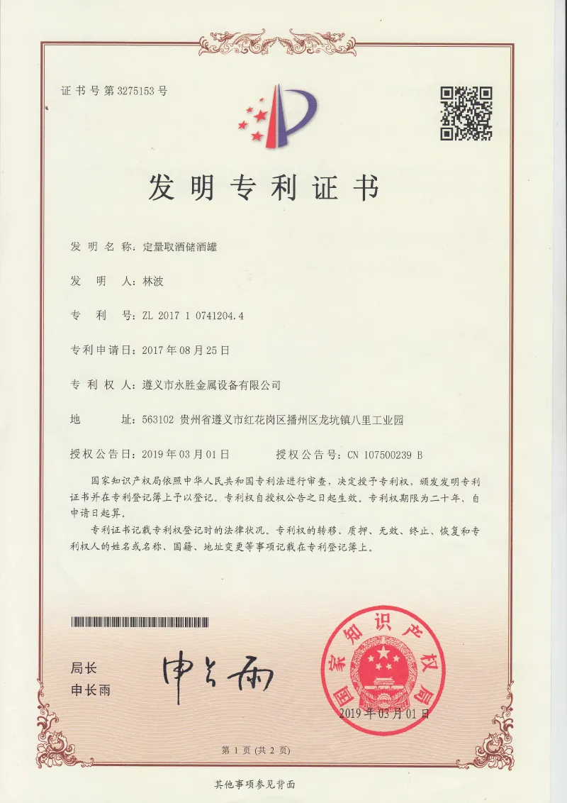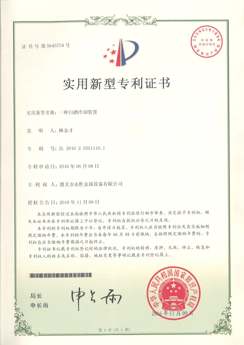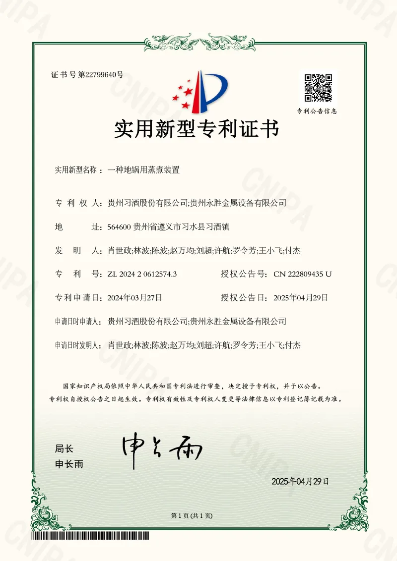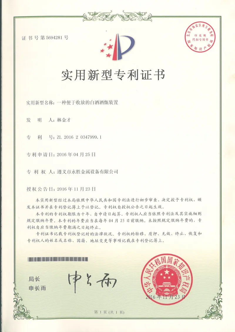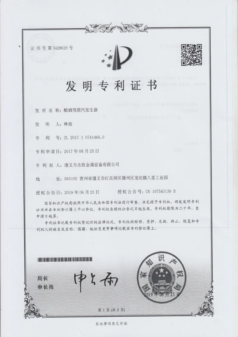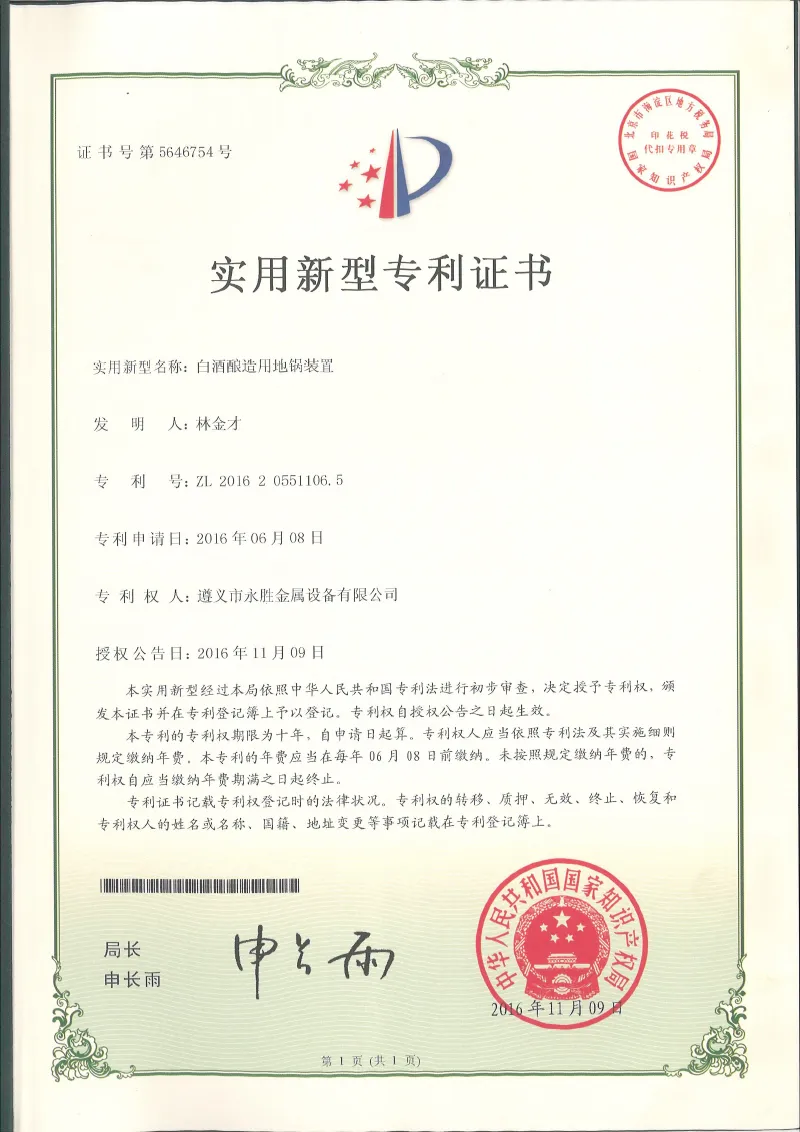 Компания получила в общей сложности 38 национальных патентов Китая, инициировала разработку ряда отраслевых технических стандартов, а также имеет лицензию на производство специального оборудования Китая, сертификат квалификации предприятия строительной отрасли, лицензию на безопасное производство, национальную лицензию на производство промышленной продукции, сертификат кредитного рейтинга уровня 3А и полный набор сертификатов шести систем: системы менеджмента качества ISO9001, послепродажного обслуживания, профессиональной безопасности и гигиены труда, экологического менеджмента, менеджмента безопасности пищевых продуктов и менеджмента интеллектуальной собственности. Показатель сдачи продукции с первого предъявления в течение 10 лет подряд сохраняется на уровне выше 99,5%. Компания является долгосрочным партнером ведущих китайских производителей спиртных напитков, таких как Маотай, Сзюцзю, Ланцзю, и была удостоена наград Маотай «Лучшая инновационная премия» и «Лучший поставщик», Сзюцзю «Лучший партнер» и Ланцзю «Стратегический поставщик».