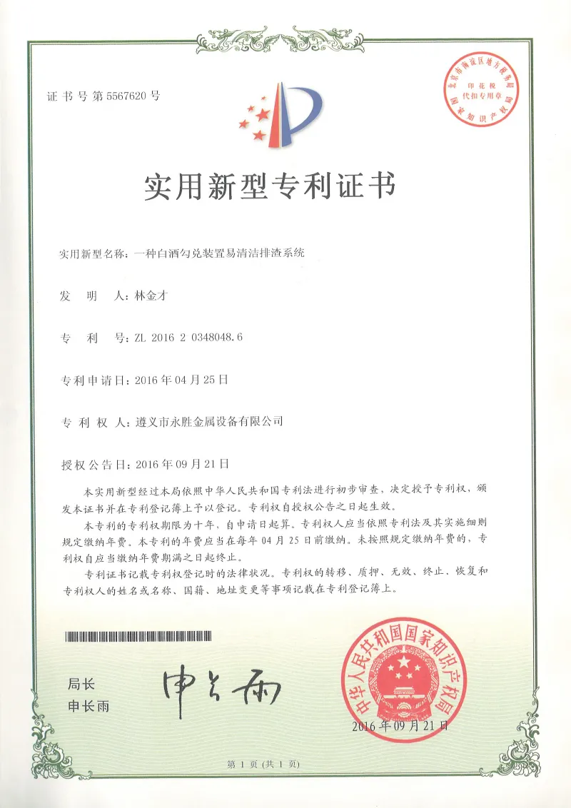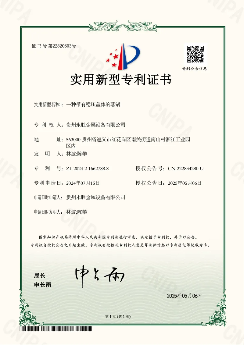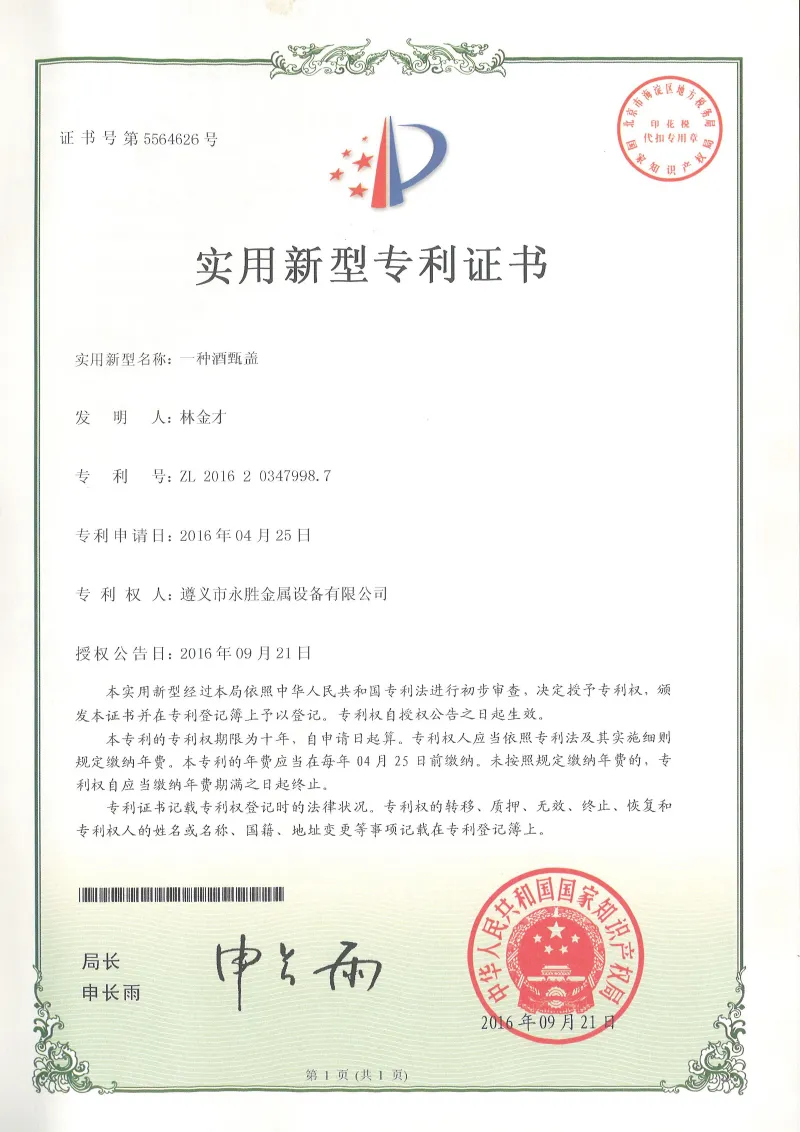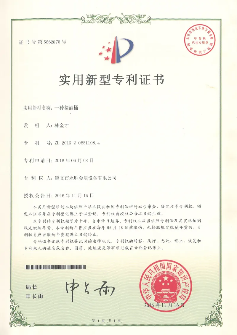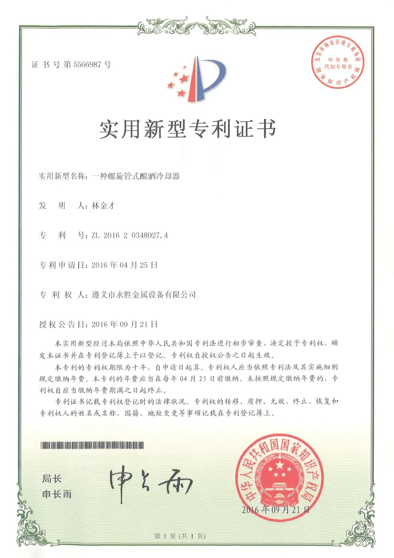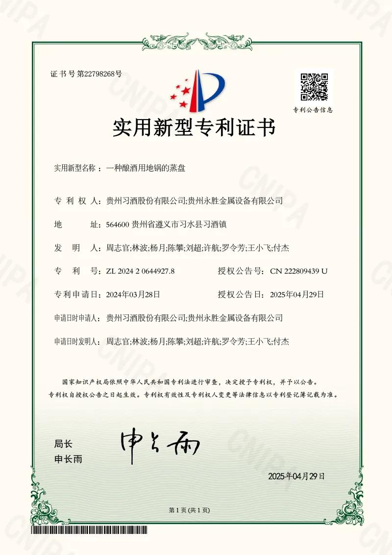 Компания получила в общей сложности 38 национальных патентов Китая, инициировала разработку ряда отраслевых технических стандартов, а также имеет лицензию на производство специального оборудования Китая, сертификат квалификации предприятия строительной отрасли, лицензию на безопасное производство, национальную лицензию на производство промышленной продукции, сертификат кредитного рейтинга уровня 3А и полный набор сертификатов шести систем: системы менеджмента качества ISO9001, послепродажного обслуживания, профессиональной безопасности и гигиены труда, экологического менеджмента, менеджмента безопасности пищевых продуктов и менеджмента интеллектуальной собственности. Показатель сдачи продукции с первого предъявления в течение 10 лет подряд сохраняется на уровне выше 99,5%. Компания является долгосрочным партнером ведущих китайских производителей спиртных напитков, таких как Маотай, Сзюцзю, Ланцзю, и была удостоена наград Маотай «Лучшая инновационная премия» и «Лучший поставщик», Сзюцзю «Лучший партнер» и Ланцзю «Стратегический поставщик».